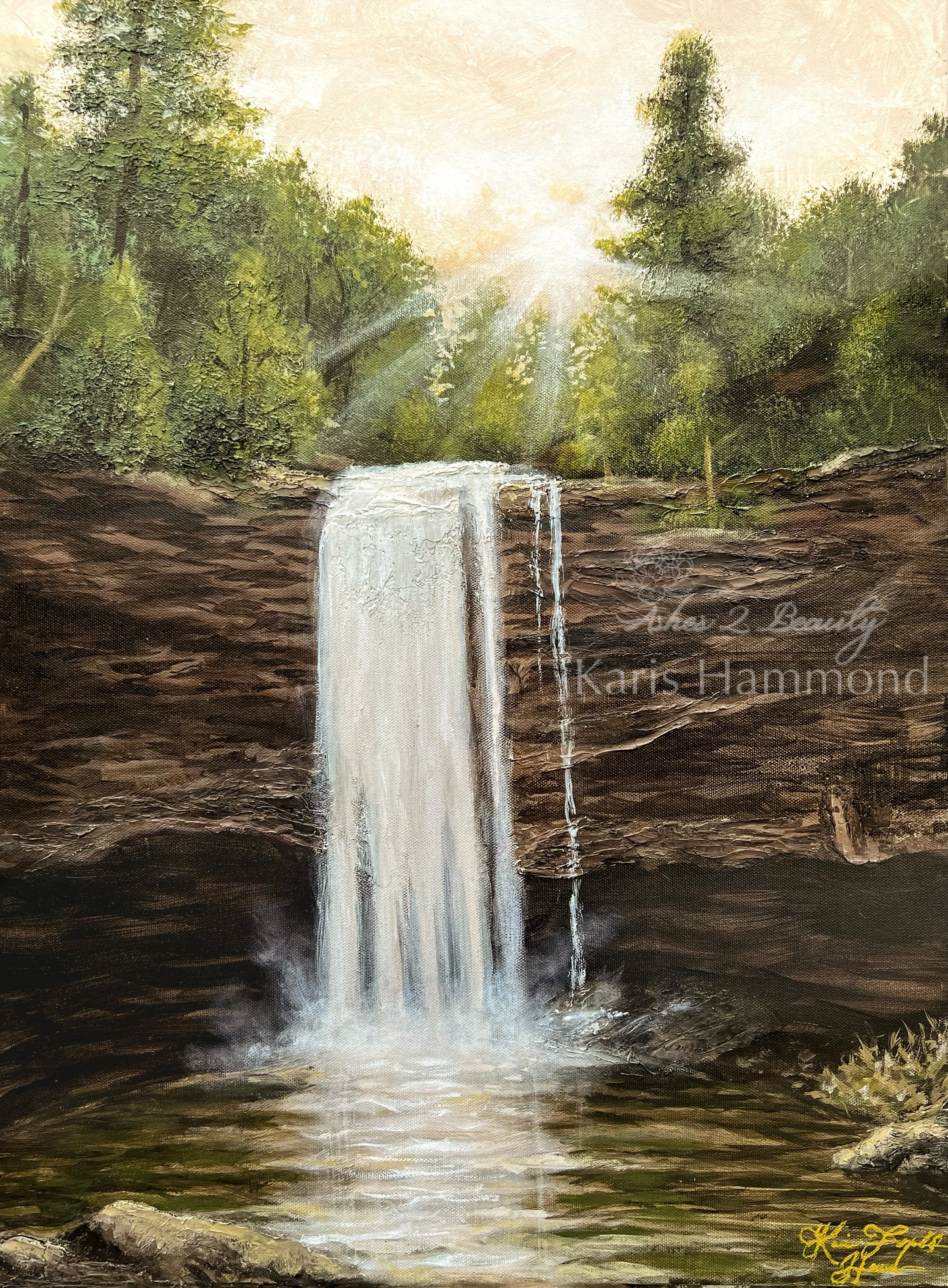 12x16" acrylics on canvas. A painting of my fiancé proposing to me at Hemlock Falls.April 27, 2024